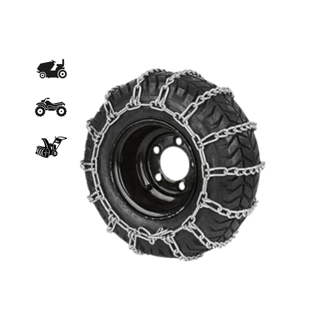 Ces chaînes à neige sont conçues pour équiper les petits engins de motoculture et véhicules utilitaires légers avec pneus moyens à larges. Elles assurent une adhérence maximale sur neige, verglas et sols glissants, garantissant traction et stabilité pour tous vos travaux hivernaux.
