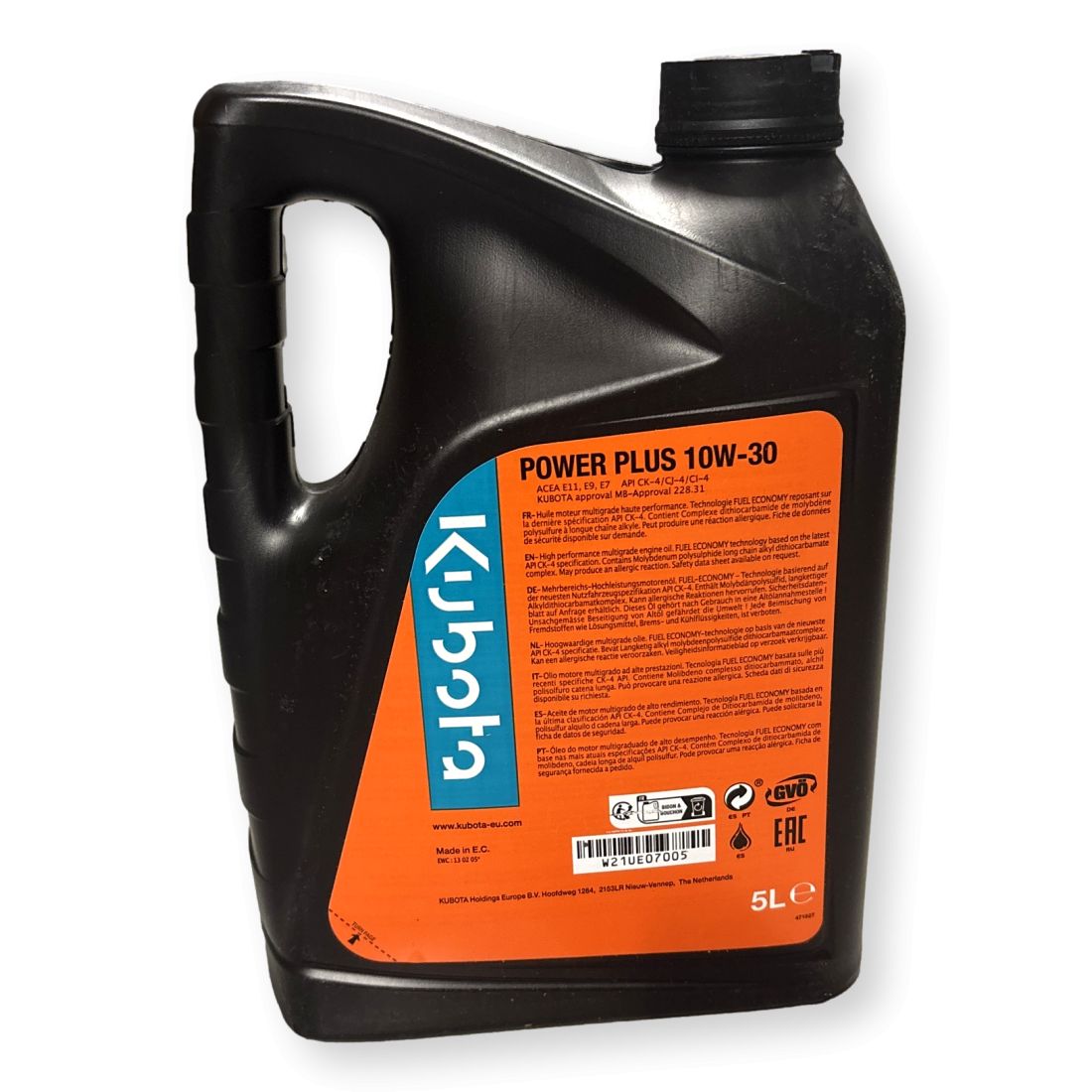 BIDON DE 5 LITRES HUILE KUBOTA POWER PLUS 10W30 API CK-4, CJ-4-SL (TIER 4 & 5) - POUR MOTEUR DIESEL - W21UE07005