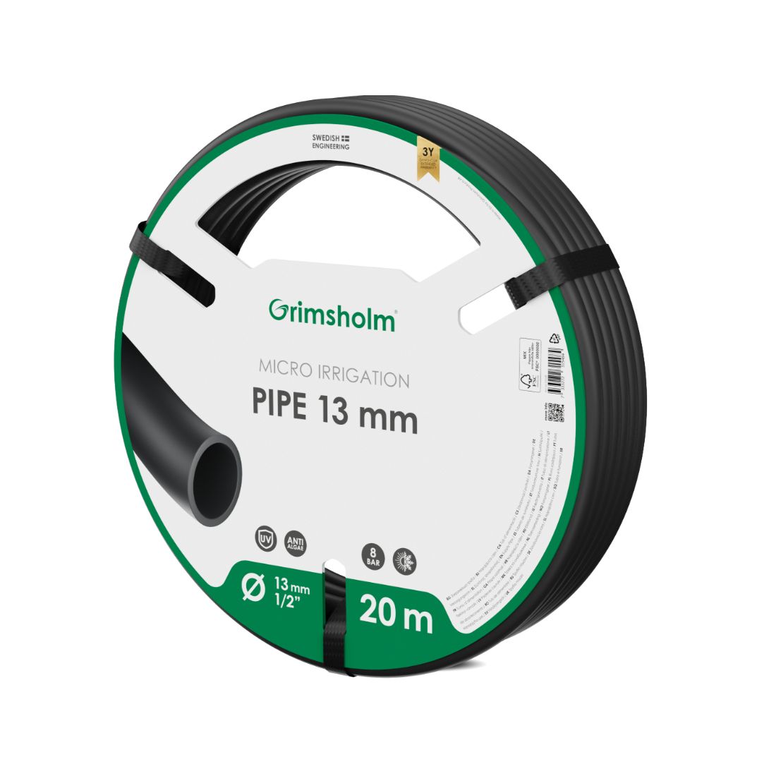 Conçu pour allier durabilité et performance, le tuyau de micro-irrigation Grimsholm 13 mm (1/2") constitue une solution idéale pour l’acheminement de l’eau au sein de votre système de micro-irrigation. Sa grande souplesse, avec un rayon de courbure d’environ 25 cm, facilite considérablement l’installation et la mise en place du réseau.